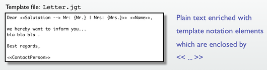 Templates are simple text files which can be enriched with template notation elements in order to work with parameters.